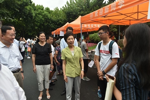 新闻中心讯 9月3日,来自全国各地的3400余名2017级本科新生,以及来自50多个国家和地区的近400名本科外国留学生新生走进复旦,开始了他们的大学生活。当天,复旦大学党委书记焦扬来到报到现场看望新生和家长,并亲切慰问了服务在迎新一线的工作人员。常务副校长桂永浩、党委副书记许征、校长助理苟燕楠,以及相关部门负责人一同看望。