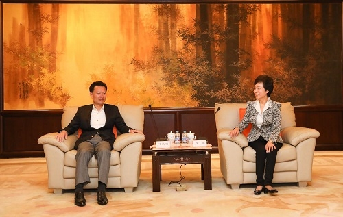 新闻中心讯 10月31日,校党委书记焦扬会见了中国华信能源有限公司董事会主席叶简明、总裁陈秋途一行。