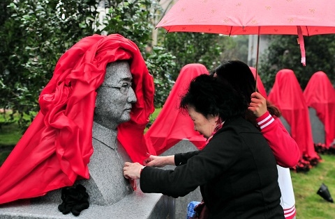 在宣誓广场,还敬放着上医16位一级教授的雕像,分别是王淑贞、苏德隆、杨国亮、吴绍青、谷镜汧、沈克非、张昌绍、陈翠贞、林兆耆、荣独山、胡懋廉、钱惪、徐丰彦、郭秉宽、黄家驷、颜福庆(按姓氏笔画为序排列)。他们在医疗工作岗位上兢兢业业、无私奉献,在医学教育岗位上严谨治学、以身示范,为我国现代医学教育和医药卫生事业的发展作出了杰出贡献。16位一级教授的家属代表早早来到现场,他们饱含着对亲人的深情和怀念,一起为上医先辈们的雕像揭幕。
