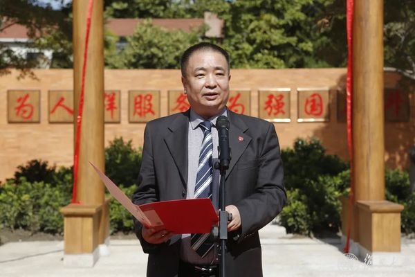 黄爱龙在致辞中指出,在复旦上医创建95周年之际,上医重庆歌乐山办学纪念校门落成揭幕,既是不忘峥嵘岁月、坚守初心使命的精神传承,更是踔厉奋发向未来的宣誓。重医特意带来了从歌乐山龙洞湾上医办学旧址采集的泥土,这捧泥土将和这座纪念校门一起,见证复旦上医在新时代新起点上推动高质量发展的辉煌篇章。重医衷心希望与复旦上医继续深化务实合作,共同传承弘扬西迁精神,携手推动新时代医学教育高质量发展,为建设教育强国、科技强国、人才强国和健康中国,贡献新的更大的力量。
