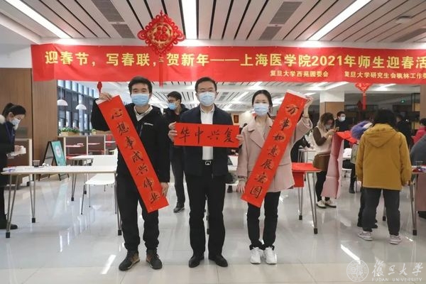 为了迎接新春佳节的到来,丰富复旦上医留校同学们的寒假生活,2月5日,西苑园委会、复旦大学研究生会枫林工作委员会在枫林校区一楼餐厅开展了“迎新春,写春联,贺新年——上海医学院2021年师生迎春活动”。活动吸引了200余名热爱书法的师生陆续前来参与,校党委书记焦扬、上海医学院党委书记袁正宏、上海医学院党委副书记、副院长徐军等也来到了现场,向留校同学们表示了热切的关心,送上了新春的祝福。