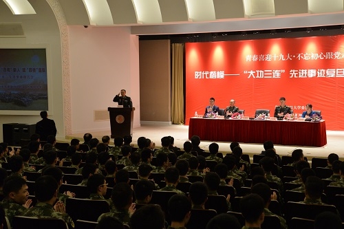3月30日下午,由中宣部、中央军委政治工作部、团中央联合组织的“时代楷模——解放军某部‘大功三连’先进事迹报告团”来到复旦大学作专场报告。团中央、团市委有关负责同志和复旦师生共计400余人聆听了这场精彩的报告会。