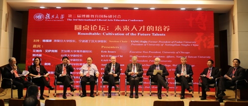 会议期间,芝加哥大学常务副校长艾瑞克?艾萨克斯、斯沃斯莫尔学院副校长托马斯·史蒂芬森、韦尔斯利学院常务副校长安德鲁·谢南、台湾大学副校长郭鸿基、香港中文大学副校长潘伟贤、岭南大学副校长莫家豪、耶鲁大学讲座教授马佐平、澳门大学全球事务总监兼校长特别顾问冯达旋、新加坡南洋理工大学高等研究所所长潘国驹、北京大学副校长高松、复旦大学常务副校长包信和、浙江大学副校长罗建红、昆山杜克大学副校长高海燕等分别作主旨报告,在全球化背景下对博雅教育进行重新思考,并从不同角度分享了为达成博雅教育(通识教育)人才培养目标而开展的教育教学实践经验。澳门科技大学校长刘良、昆山杜克大学校长刘经南等9位嘉宾还在会议中参与了由杨福家主持的、主题为“未来人才的培养”的深入研讨。