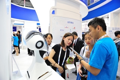 中西医健康智能机器人也是本次参展的一大亮点。据现场报道,在展厅内,机器人有着很高的人气。