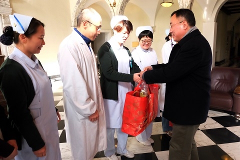 当天,许征赴附属金山医院、附属公共卫生临床中心慰问,袁正宏赴附属儿科医院、附属市五人民医院慰问,刘承功赴附属妇产科医院、附属浦东医院慰问,分别带去了学校对附属医院医务人员的问候,祝愿大家过个温暖、愉快的新春佳节。上述附属医院党政负责人和学校有关职能部处负责人陪同慰问。