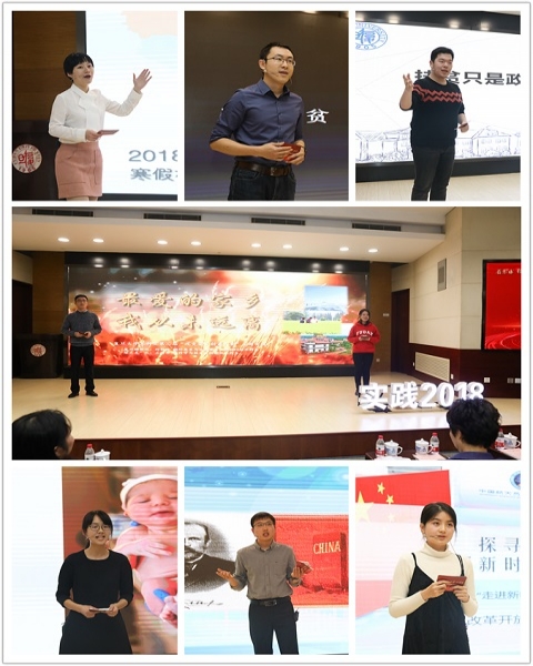 2018年寒假社会实践优秀项目代表先后分享了社会实践中的精彩故事和成长感悟。作为将持续三年的社会实践项目,哲学学院2017级博士生田博毅以双鸭山市驻村第一书记工作和饶河县小南河村党建带脱贫的成功经验,初步分析基层党建在精准脱贫和乡村振兴战略布局中的连接作用与机制;材料科学系的左宗正对福建屏南的“脱贫攻坚、精准扶贫”进行了考察,通过分析实践里的“那村、那人、那事”,深入学习、探讨以基金会为代表的社会力量在扶贫工作中的重要作用;新闻学院2017级硕士研究生李相如向大家讲述了寒假参访中国航天员中心的经历,展现改革开放四十年来,一群群中国航天人对于中国航天事业坚持不懈筑梦、逐梦、圆梦的生动身影;基础医学院本科生王婧以“认识分娩镇痛,共促健康中国”为题,回归生命本源,关怀女性心理,引导公众对“分娩镇痛”的关注和认知;博士生讲师团讲师王翩秉承“学以致用双向增进,宣传理论服务社会”的宗旨,致力于“深入基层讲理论,弘扬时代主旋律”,积极思考如何把党的最新思想最新理论带到最需要的地方;核科学与技术系的石盼华和国际关系与公共事务学院的孙钰欣把目光投向了自己的家乡,进行了深入的体悟与考察,致力于用创意改变家乡,演绎了一幕“最爱的家乡,我从未远离”的精彩故事。