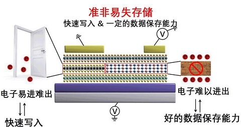 据了解,目前半导体电荷存储技术主要有两类,第一类是易失性存储,例如计算机中的内存,掉电后数据会立即消失;第二类是非易失性存储,例如人们常用的U盘,在写入数据后无需额外能量可保存10年。前者可在几纳秒左右写入数据,第二类电荷存储技术需要几微秒到几十微秒才能把数据保存下来。