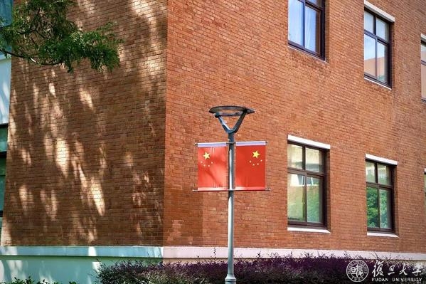 满园红裳,复旦庆祝中华人民共和国72华诞。道路旁,旗杆顶,路灯下,五星红旗布满学校的各个角落。悬起灯笼,摆上立牌,食堂内外,到处洋溢欢度国庆的气息。