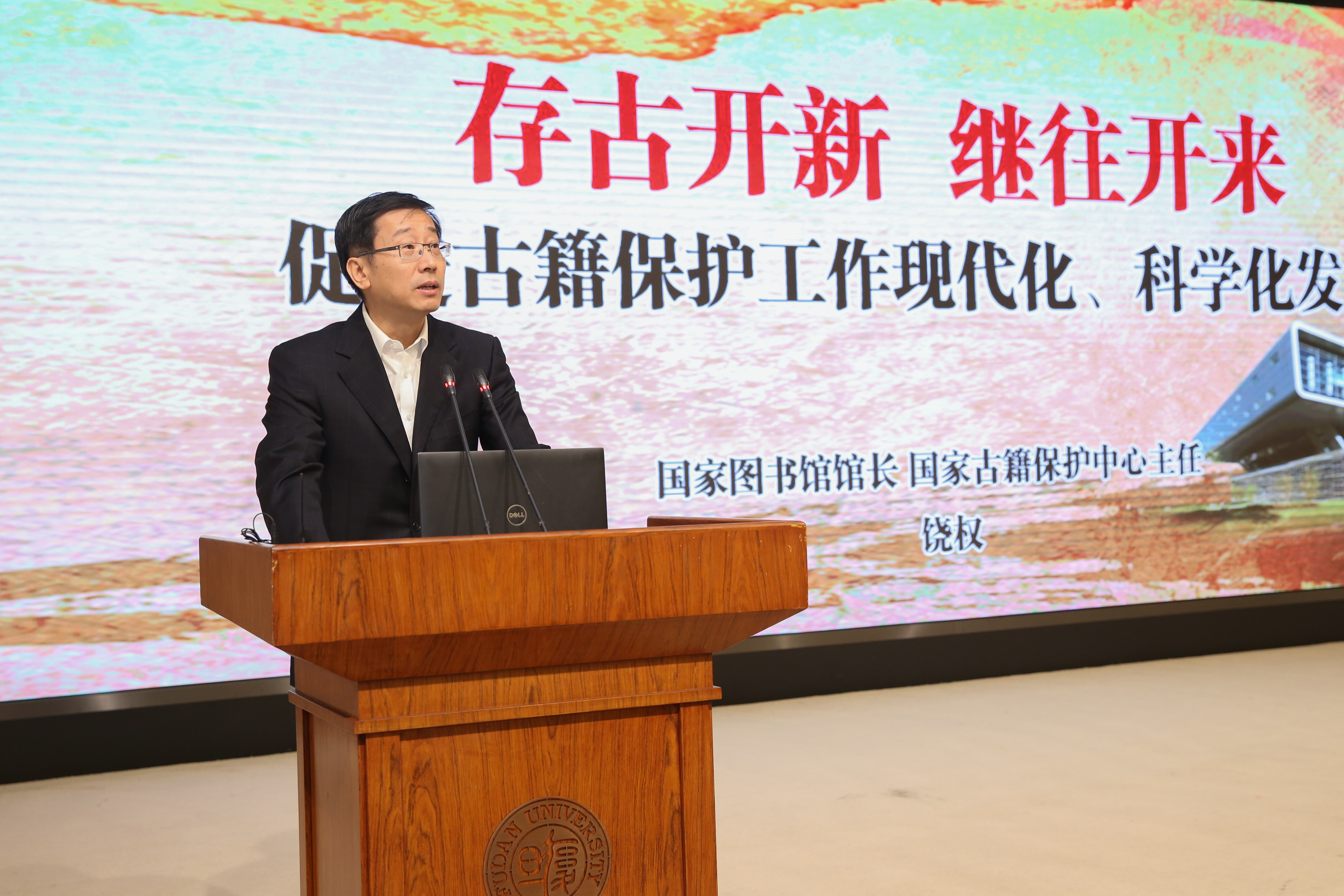饶权围绕古籍保护工作现代化做了精彩的主旨报告。饶权表示,古籍是中华民族重要的文化财富和精神家园,蕴含着中华民族丰富而宝贵的历史记忆、思想智慧和知识体系,代表了中华民族一脉相承的精神追求、精神特质与精神脉络,始终并将永远是国家和民族生存发展的精神基石。保护好、传承好这些珍贵典籍,不仅是每一个文化工作者,也是科技工作者应该肩负的历史使命。