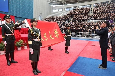 典礼由常务副校长桂永浩主持。在庄严的升国旗、奏国歌仪式之后,校党委书记焦扬为来自志德、腾飞、克卿、任重、希德五大书院的新生代表授书院旗。