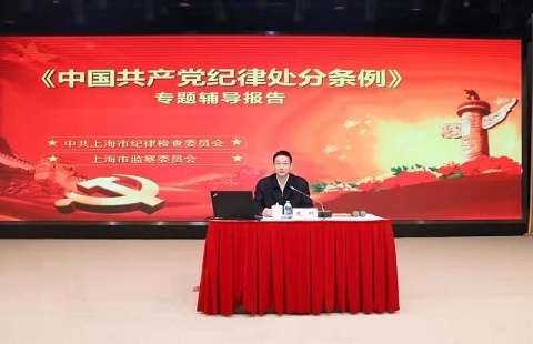 新闻中心讯 11月13日下午,校党委理论学习中心组举行集体(扩大)学习会,主题是学习习近平总书记关于党的纪律建设的重要论述和新修订的《中国共产党纪律处分条例》(以下简称《条例》)。邀请中共上海市纪委副书记、市监察委员会副主任戴骅作专题辅导报告。