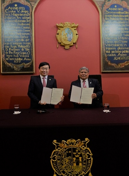 当地时间11月7日上午,第二届复旦—拉美大学联盟(FLAUC)年会在秘鲁首都利马开幕。此次年会以“大学与发展”为主题,由秘鲁圣马尔科斯国立大学(National University of San Marcos)主办。当天下午,秘鲁圣马尔科斯国立大学校长 Orestes Cachay Boza与复旦大学校长许宁生代表两校签署合作框架协议。