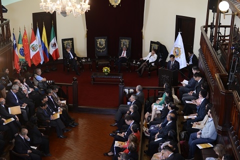 Orestes Cachay Boza校长在年会开幕式致辞中对复旦大学代表团的到来表示欢迎。他指出,复旦与拉美大学之间的联盟,有利于促进经济和商业领域命运共同体的形成,为中拉大学之间的学术和文化交流奠定了坚实的基础。圣马尔科斯国立大学将继续致力于高等教育发展,积极为秘鲁及全球的可持续发展做出贡献。