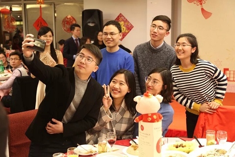 两场迎春会上,师生们不仅享受到了美味丰盛的年夜饭,还欣赏了阿卡贝拉人声合唱、古筝演奏、京剧、相声、魔术、武术、歌舞等精彩节目。参与表演的不仅有中外学生,还有老师和已经毕业的校友,以及来自学生生活园区的管理督导员。迎春会中穿插了“福旦知否”、“福聚复旦”、“猪年要团圆”等互动游戏,抽取了“如有神助”、“胸有成竹”、“字字珠玑”、“掌上明珠”等奖项,现场其乐融融,高潮迭起,师生共享了一场复旦版“春晚”。最后,迎春会在厨师和服务员登台,全场同唱“新年好”的歌声中落幕。