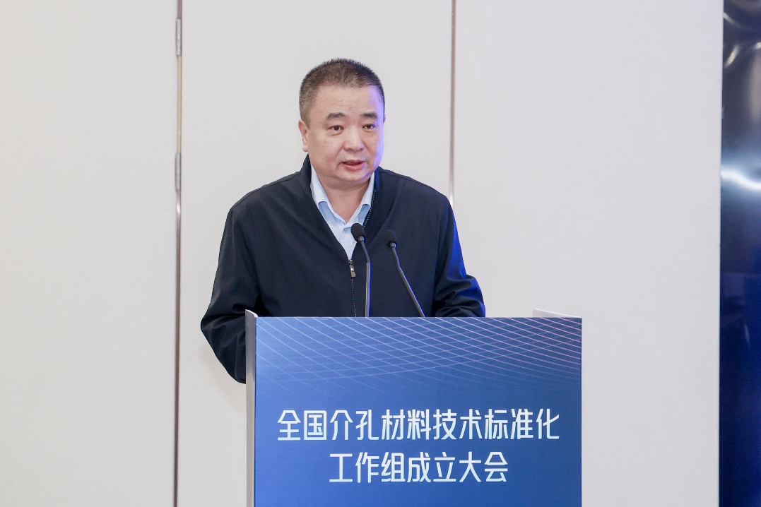 金力在致辞中指出标准对创新链的支撑价值:“介孔材料创新链从基础研究到产业落地的成熟标志,关键在于标准化的闭环构建。”他表示,赵东元院士团队深耕介孔材料领域二十余载,以“有机 — 有机自组装”创新思想突破国际技术瓶颈,成功斩获国家自然科学奖一等奖,如同在微观材料世界构筑起一座科研“大厦”,为我国牢牢占据该领域国际领先地位奠定了坚实根基。金力表示,复旦大学将以吴淞材料实验室为核心平台,推动介孔材料原创成果沿创新链向产业端延伸;针对行业“标准化人才接口缺失”的痛点,他进一步指出,学校已面向全校学生开设标准化微课程体系,重点培育“科研 — 标准 — 产业”的衔接能力,从人才端破解标准化工作落地难题。