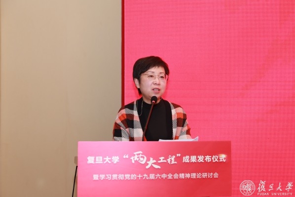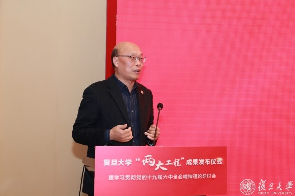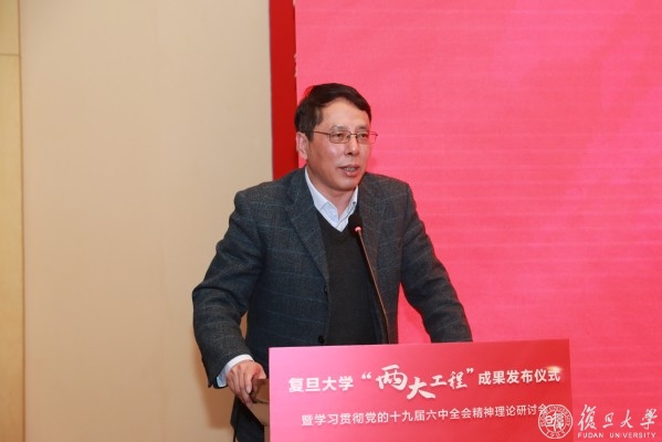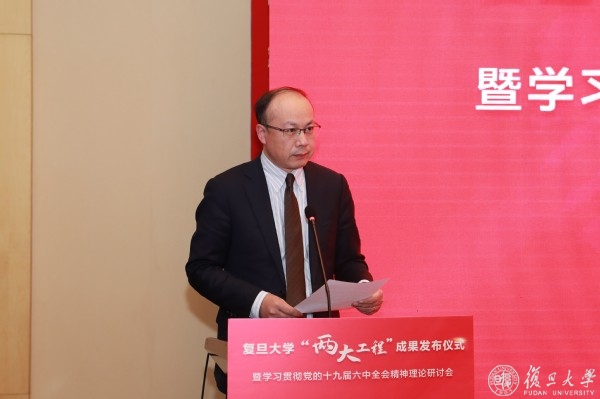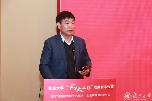 复旦大学党委常委、副校长陈志敏主持党的十九届六中全会精神理论研讨会。