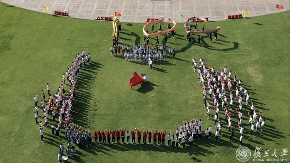 复旦学子齐力拼出“100”的字样,庆祝中国共产党成立100周年。