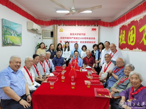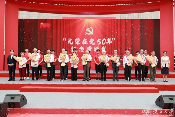 在庆祝中国共产党成立100周年之际,为了从政治上激励、精神上鼓舞广大党员、进一步增强党员的荣誉感、归属感、使命感,党中央决定首次向党龄达到50周年、一贯表现良好的党员颁发“光荣在党50年”纪念章。据统计,复旦大学共有806名党员获得该纪念章。