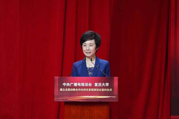 焦扬在致辞中表示,长期以来,复旦大学一直与中央广播电视总台保持密切合作关系,接力培育高素质新闻人才,联合开展学术研究,共同唱响主旋律、传播正能量。双方今天正式建立全面战略合作伙伴关系,揭牌国际传播研究院,标志着合作迈上新台阶。复旦大学与总台将携手共进,在唱响新时代最强音、推动产学研用深度融合、提升国家文化软实力、合作培养新闻舆论工作人才上下更大气力,共同承担起举旗帜、聚民心、育新人、兴文化、展形象的使命任务。