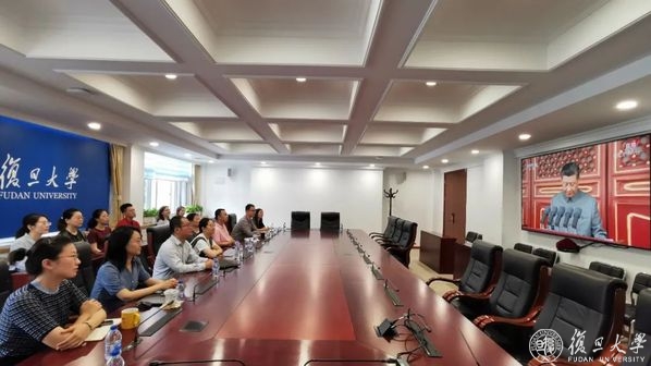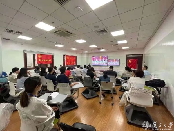 在《共产党宣言》展示馆,陈望道老校长家属、前不久刚刚加入中国共产党的陈振新夫妇同“星火”党员志愿服务队队员们共同收看,共话信仰;在新时代上海高校党建创新实践基地,外国语言文学学院学生党支部的党员们探讨青年使命担当;在智库楼,老中青智库专家们更加坚定了为党和国家建言献策的方向;在微电子学院机电系统实验室,青年科技工作者们更加明确了科研报国的目标;奔赴全国各地的招生组在驻地收看,期待将红色基因植入未来复旦人的心中;不少在海外的复旦人也通过网络收看,共同为党庆生。