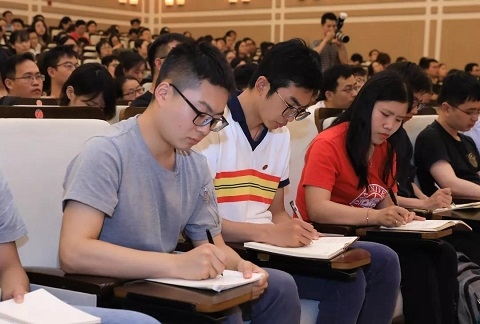 两个半小时的课堂,400余名来到现场的毕业生凝神聆听。教室里时而传出会心的笑声,而十多次热烈的掌声,既有向先辈和身边榜样的致敬,也有对焦扬所讲感悟的共鸣,更有为奋斗未来的鼓劲。