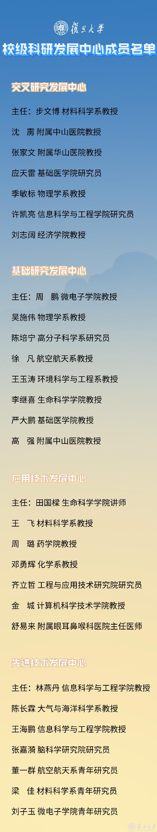 在此背景下,基础研究发展中心汇集来自复旦各个院系的教师,旨在推动学校基础研究领域的科研工作组织谋划、学术交流活动组织,凝练基础研究重要科学问题,组织谋划重大科研项目和重要科研平台;对接科技部基础司、上海市科委基础研究处等部门,主动参与国家和地方基础研究相关科研规划的制定,协助负责与 Science学术期刊的对接等。
