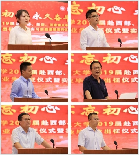 出征仪式上,经济学院本科毕业生姚典君、高分子科学系博士毕业生王鹏作为代表发言,代表毕业生们发出用奋斗谱写青春之歌的心声。社会发展与公共政策学院2007届毕业生、陕西省选调生刘少军作为校友代表发言,分享了在基层工作的经历和感悟。这些优秀的复旦学子与祖国同向而行,与时代同频共振,用他们的实际行动响应习近平总书记的号召,让奋斗成为青春最亮丽的底色,使在场的嘉宾与师生们备受感动和鼓舞。