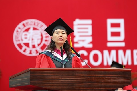 “作为复旦培养的留学生,复旦大学的精神和校风深深的影响了我。‘团结、服务、牺牲’已经成为我生活的追求。”国际文化交流学院2019届汉语言(对外商务汉语方向)专业的俄罗斯学生斯维塔(SVETLANA RZAEVA)作为留学生代表发言。她说,经过在中国的生活,逐渐了解中国人的文化和传统,对中国人百折不挠、自强不息、坚韧不拔的精神十分佩服。她与所有毕业生共勉:“展望未来,我们任重道远!”