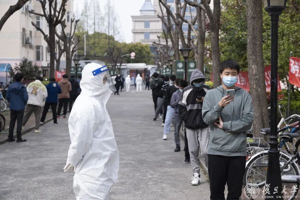 按照全市新一轮核酸筛查工作的统一部署,浦西于4月1日3时至4月5日3时,实施全域范围封闭管理。4月1日是浦西地区实行封控的第一天,复旦大学按照上海市新一轮核酸筛查工作的统一部署要求,有序开展校内师生核酸检测工作。