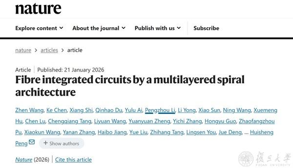 该成果于北京时间1月22日凌晨以《基于多层旋叠架构的纤维集成电路》(“Fibre integrated circuits by multilayered spiral architecture”)为题发表于《自然》(Nature)期刊,有望为脑机接口、电子织物、虚拟现实等新兴产业提供强有力的技术支撑。