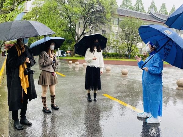 今晨有雨,南区零星可见同学们走出楼栋、雨中散步的身影,他们各自保持间距、撑起雨伞,漫步在花园草坪中。焦扬在现场详细询问相关部门负责人,了解区域网格化管理与园区各项生活保障措施。她指出,下一阶段学校不仅要从严从实从紧抓好网格化管理,还应在试运行的基础上广泛收集师生反馈,优化实施方案,加强信息公开,让学生有预期,了解学校管理手势,能主动调整和安排,做好相应配合。