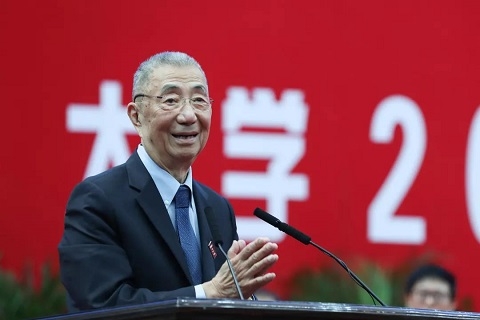 今天的开学典礼还特别邀请到了复旦大学校董、复旦大学荣誉教授,诺贝尔物理学奖得主丁肇中为新生寄语。他表示,他的一家与复旦大学有一百年的历史渊源,他的祖父曾在复旦求学,父亲曾在复旦教书,自己也曾多次来到复旦大学。丁肇中分享了他对科学研究的三个看法,“理论不能推翻实验,但实验可以推翻理论。”“自然科学的研究,不是少数服从多数,而往往是多数服从少数,极少数的人把绝大多数人的观念推翻了以后,才能向前走。”丁肇中鼓励新生们,“书本上的东西都是别人以前做过的,勇往直前,要有推翻书本知识的勇气!”