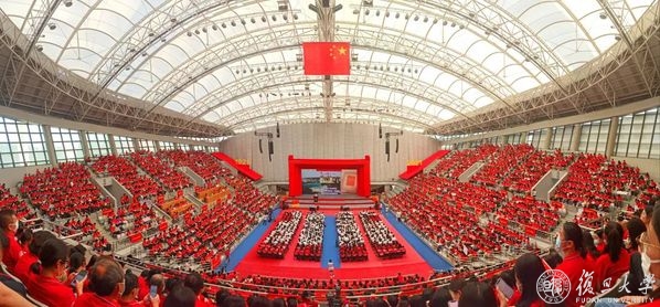 6月24日,正大体育馆汇成红色的海洋,4600余名复旦党员集体重温入党誓词,一同聆听焦扬带来的主题党课《五史相辉映 初心照百年》。