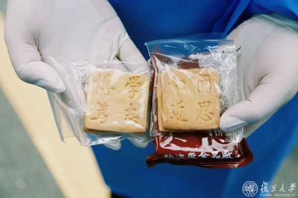 校庆日,食堂精心烤制了印有“博学笃志”“切问近思”的校庆饼干,午餐时段,随餐附赠给取餐的师生。时针回拨,熹微,在27日凌晨5点的校车发车点,返乡同学也带着校庆饼干,踏上回家的旅途。