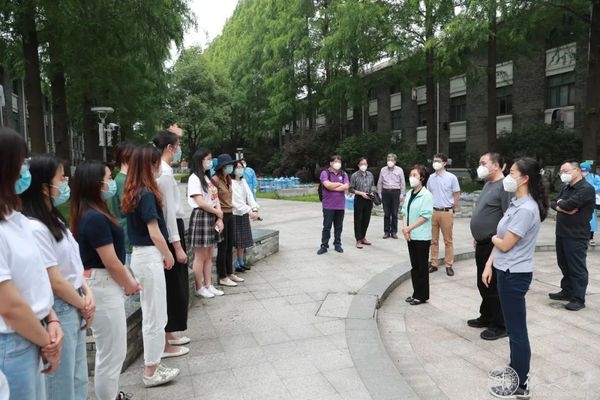 随后,焦扬、金力一行到本部任重书院中庭,慰问住楼辅导员、楼层长代表和本部包保干部,了解学生学业考核、离校、留校等情况,询问住楼辅导员、楼层长学习生活上的困难和需求。有住楼辅导员提出,毕业生关心学校是否还会举办毕业相关活动等问题。焦扬表示,学校一定会积极回应毕业生的需求,正在根据疫情防控政策和手势,妥善安排毕业典礼、毕业照拍摄、毕业衫赠送等活动,为毕业生留下美好回忆。