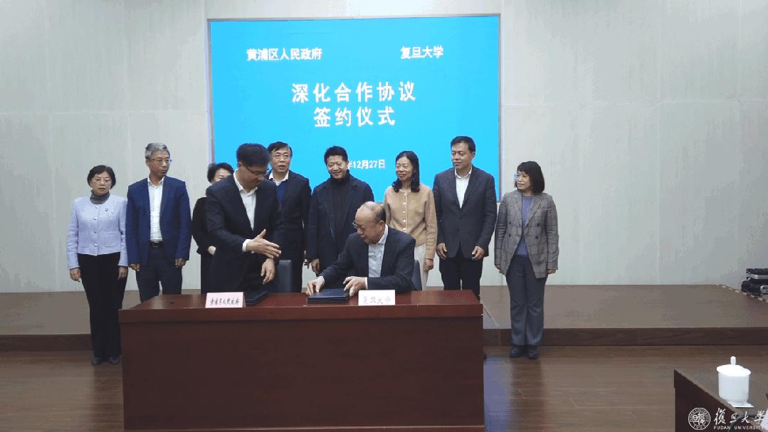 12月27日下午,复旦大学与上海市黄浦区人民政府签署深化合作协议、共建国际金融学院备忘录,双方将在文化建设、基础教育、产业发展、人才培育等方面进行区校全面战略合作。