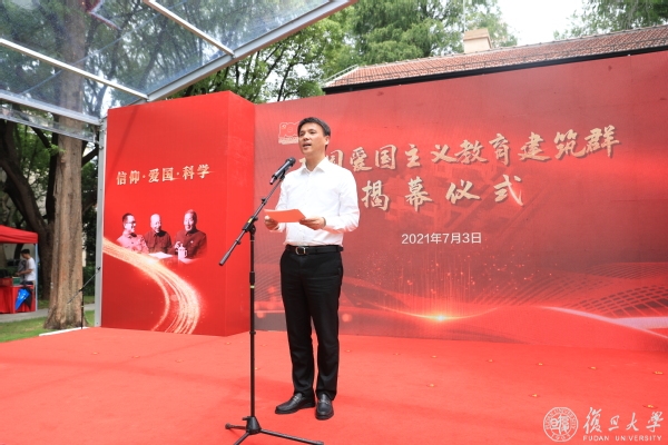 “这是复旦人为建党百年献上的一份特殊礼物,也是我们致敬先贤大师、传承红色基因和大学精神、加强校园文化建设的重要举措。”校党委书记焦扬在玖园爱国主义教育建筑群揭幕仪式上致辞表示。
