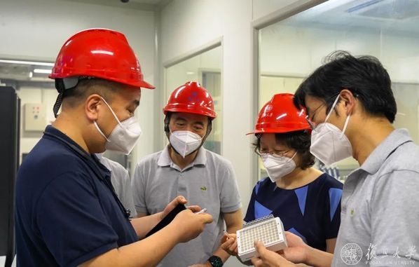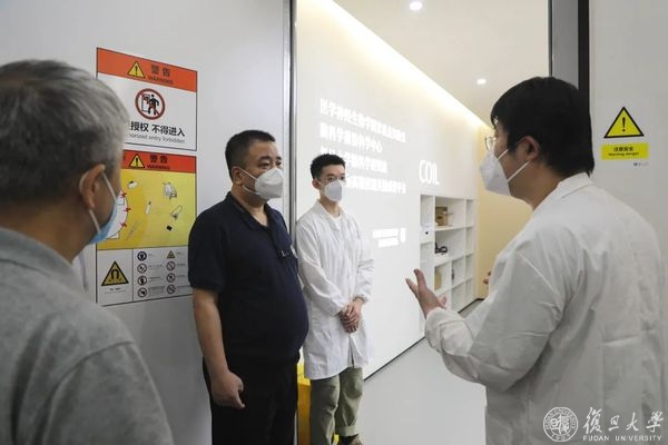在复星楼,院领导一行调研核酸检测能力建设和其它检测平台运营情况。复旦上医依托医学分子病毒学教育部/卫健委重点实验室、上海市重大传染病和生物安全研究院和病原生物学国家重点学科优势,在枫林校区病原生物大楼(复星楼)新建复旦大学上海医学院病原高通量核酸检测点。目前根据建设方案正在加紧推进,有望在7月上旬启动使用。