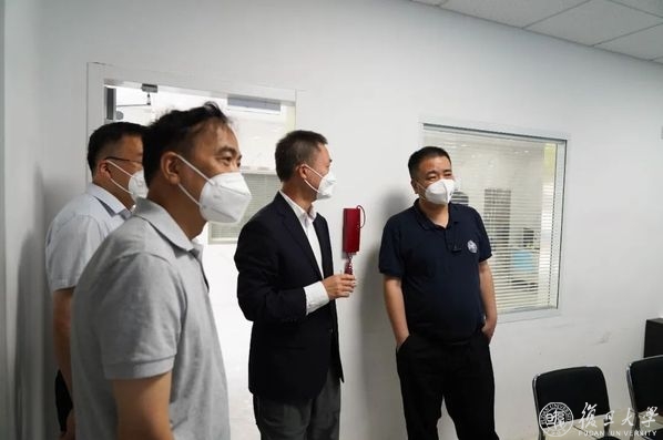 在实验动物科学部,院领导一行在监控室查看了动物房内的运行情况。疫情期间,实验动物科学部多名工作人员驻守校园,照料实验动物,保证设施设备的持续运行,为科研实验保驾护航,得到了广大师生的好评。