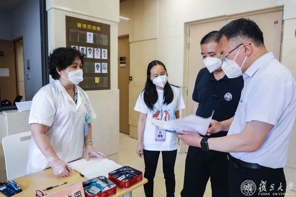 6月8日上午,复旦大学校长、上海医学院院长金力,复旦大学党委副书记、上海医学院党委书记袁正宏,上海医学院党委副书记、副院长徐军一行先后走访科研平台、实验动物科学部、门岗、图书馆、餐厅、超市、学生公寓楼、菜鸟驿站、核酸检测点等,详细了解各院系平台复工复研情况,调研指导进入新一轮准封闭管理后的校园疫情防控工作。医学院各职能部门负责人和有关院系驻校负责人陪同调研。