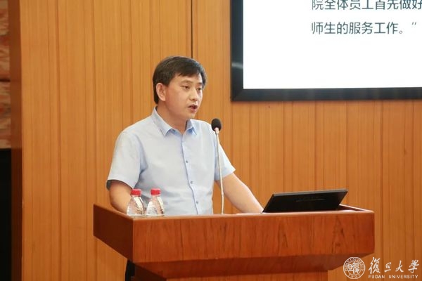 历史学系党委书记刘金华在发言中回顾了担任北苑学生生活园区包保工作组组长期间的工作情况。根据学校党委整体部署,5月12日-6月13日,18个部处单位,22名包保干部下沉一线,包保北区16个学生网格5500名学生管理、教育、服务工作。包保工作小组发扬 “团结、服务、牺牲”的复旦精神,践行学校“五个一线”工作理念。包保干部沟通协调,团结各方,形成合力育人格局。包保工作小组与研究生工作部,包保干部内部以及与各自包保网格都建立了合理工作机制。包保干部用心用情,积极回应学生需求,开展服务育人工作,及时发现问题并积极协调解决,填补防疫漏洞。包保干部倾情付出,坚持包保工作与本职工作双线并进,志愿服务不计个人得失,舍小家为大家,服从学校育人工作大局。